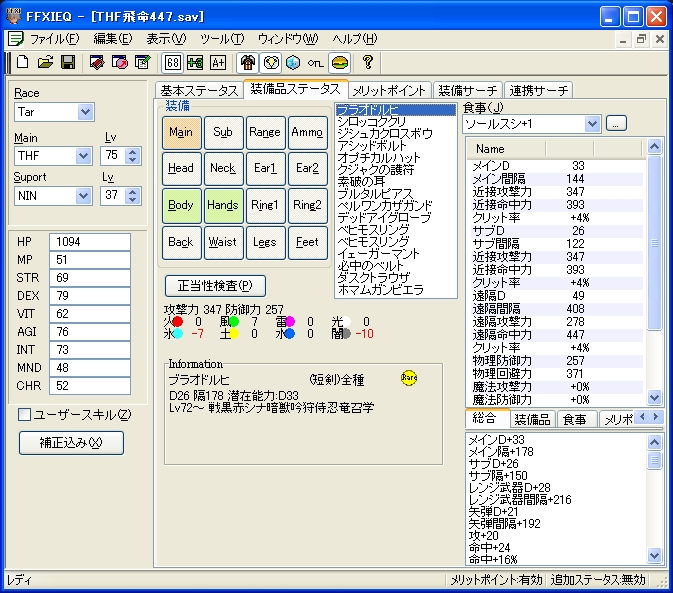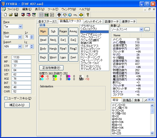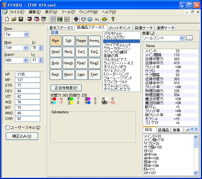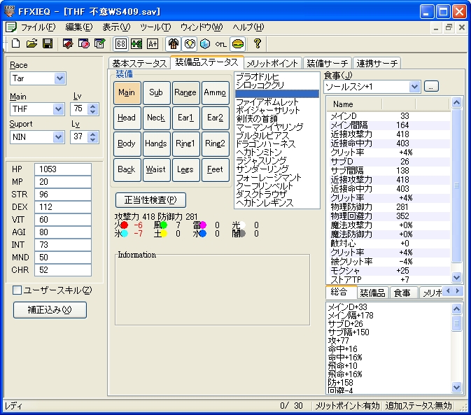 注…シーフマムはフェイント効果時間中は命中406の装備で十分キャップします。